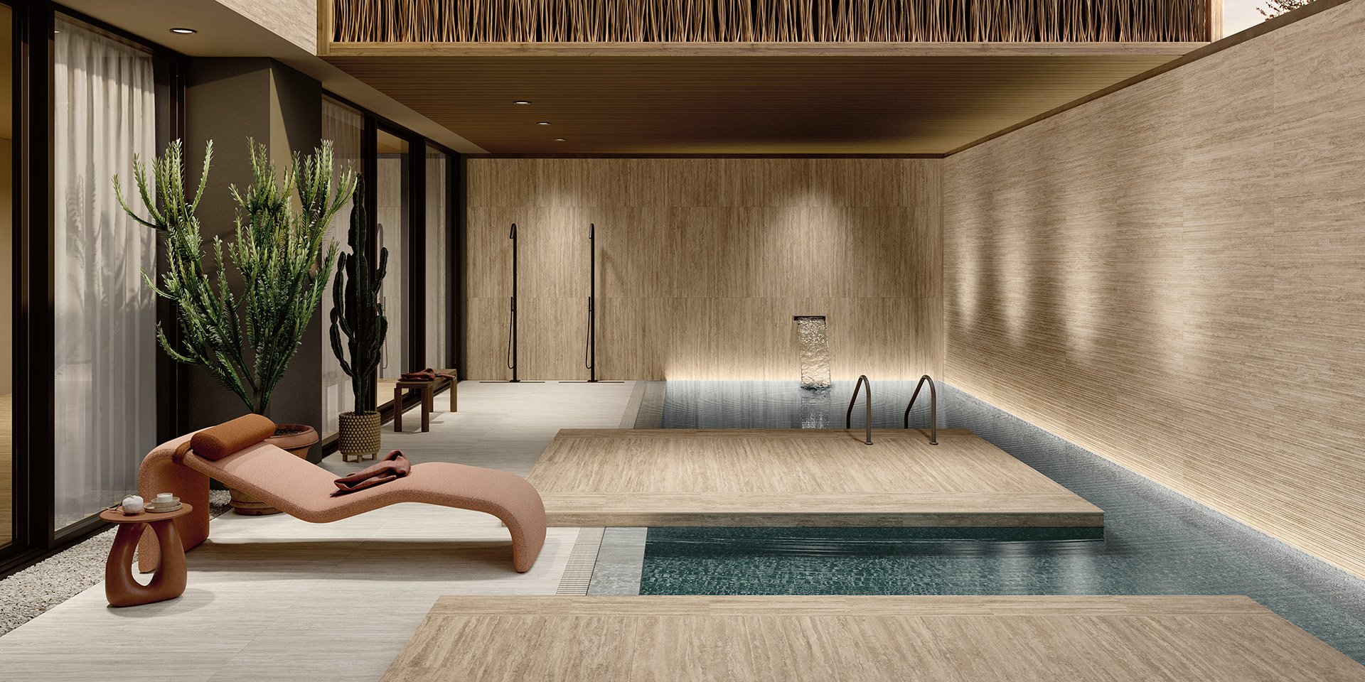 Vein-cut Roman travertine has been used ever since antiquity for constructing buildings of supreme importance, starting from the Colosseum and St Peter’s Basilica. New Classic reinterprets this travertine’s beauty with a variety of surfaces, while fully exploiting all the qualities of porcelain stoneware.