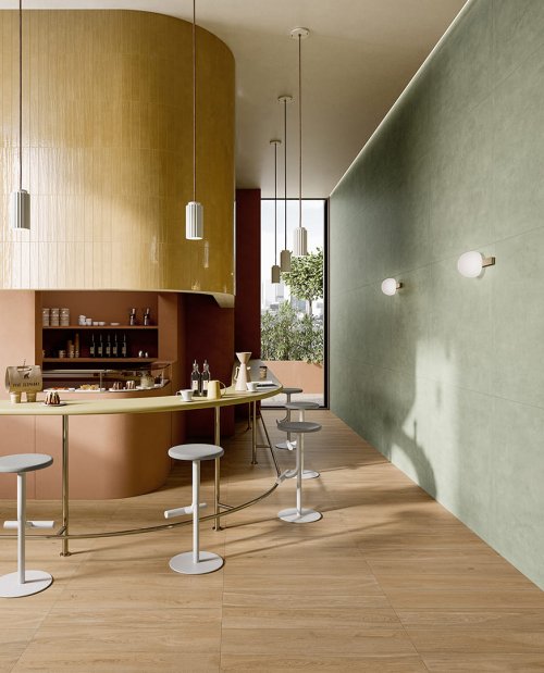 Terrazzo vénitien, effet béton et brique colorés au sein d'une unique collection