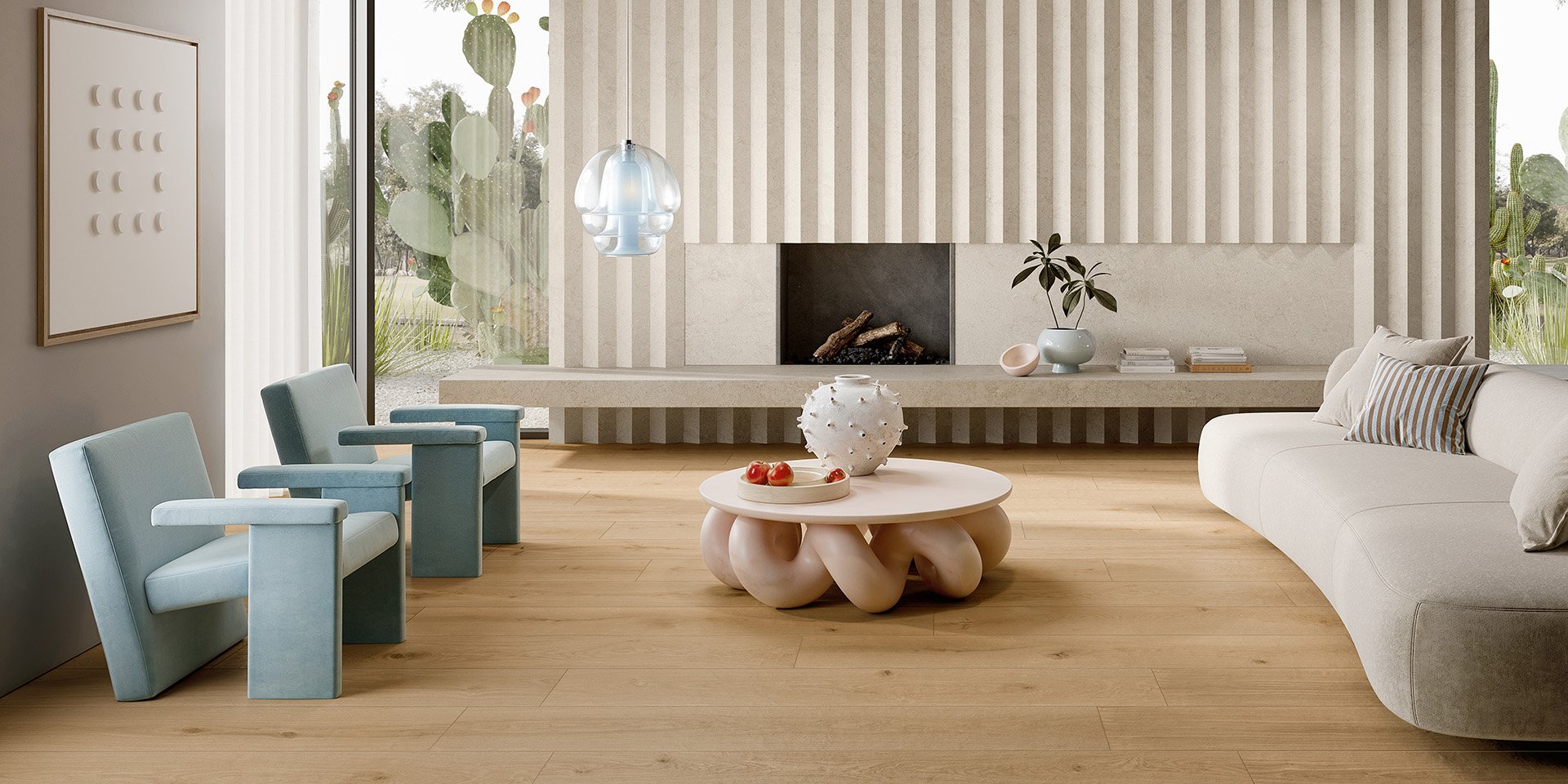 Prestigiose e materiche, le lastre in gres porcellanato Wide Surfaces conferiscono un senso di profondità ed ampiezza ad ambienti commerciali e residenziali.