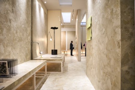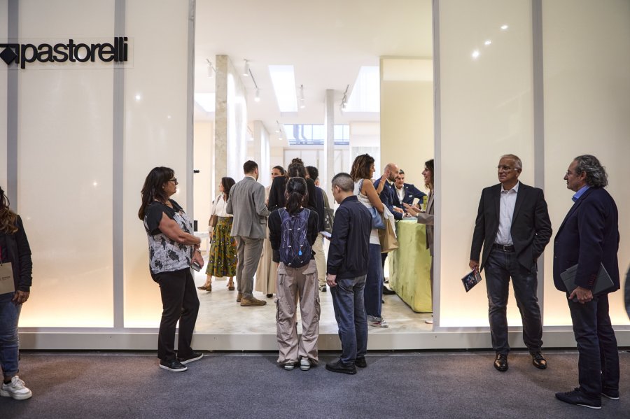 Lo stand di Pastorelli per Cersaie 2025 nasce come un vero e proprio atelier di architettura: uno spazio in cui la ceramica diventa parte integrante di un racconto che parla di stile, sperimentazione e ricerca. In una società che corre veloce, Atelier Pastorelli è un invito a rallentare, osservare, toccare, riflettere. Una tela bianca, pulita, essenziale, riveste il perimetro dello stand e lascia intravedere al suo interno mondi diversi. Ogni area rivela una visione distinta, caratterizzata da superfici, texture e cromie specifiche. Ciascuna collezione è raccontata come un progetto a sé, accompagnato da cartigli tecnici e da oggetti di design per arredare un percorso ispirazionale dove la ceramica non è solo materia, ma linguaggio contemporaneo al servizio dell’idea. Per il visitatore, l’effetto è quello di entrare in un luogo vivo, pensato per lavorare, trovare nuovi stimoli, creare. Elementi modulari, mobili e flessibili, pensati per accogliere, tozzettari e campionature facilmente consultabili, quaderni, schizzi, libri, materiali d’archivio, ogni singolo dettaglio richiama il lavoro quotidiano del progettista. Nell’epoca dell’immateriale, Atelier Pastorelli ci ricorda il piacere delle cose vere: il suono della matita sulla carta, il peso di un campione ceramico tento in mano, la luce che cambia intensità durante il giorno.